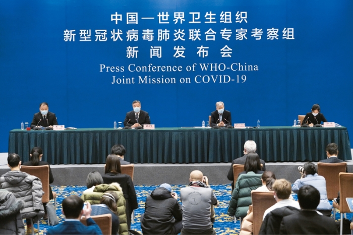 2020年2月24日,中国—世界卫生组织新冠肺炎联合专家考察组在北京举行新闻发布会,邀请考察组中方组长、国家卫生健康委新冠肺炎疫情应对处置工作专家组组长梁万年,考察组外方组长、世界卫生组织总干事高级顾问布鲁斯·艾尔沃德介绍考察组现场调研情况并回答记者提问。 新华社记者 邢广利/摄