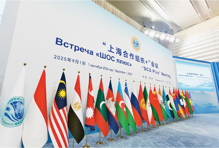 2025年是中国人民抗日战争暨世界反法西斯战争胜利和联合国成立80周年。在这个承前启后的特殊历史年份,习近平总书记在“上海合作组织+”会议上郑重提出全球治理倡议,为改革完善全球治理进一步贡献中国智慧、提出中国方案。图为9月1日拍摄的“上海合作组织+”会议现场。 中央广播电视总台央视记者 曹亚星/摄