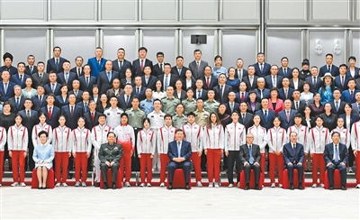 11月9日下午,中共中央总书记、国家主席、中央军委主席习近平在广州亲切接见全国群众体育先进单位、先进个人代表和全国体育系统先进集体、先进个人代表,并同大家合影留念。