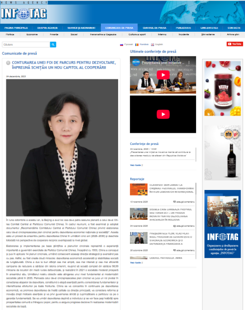 2025年12月4日,驻摩尔多瓦大使董志华在摩主流媒体“信息标签”通讯社发表署名文章《擘画发展蓝图,共绘合作新篇》,全文如下: