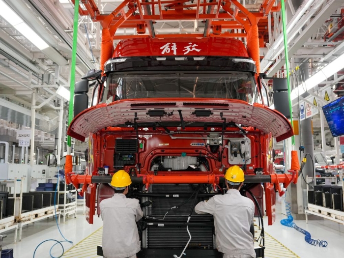2026年1月4日,工人在位于吉林省长春市的一汽解放J7整车智能工厂装配车辆。新华社记者 张楠 摄