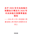 关于2025年中央和地方预算执行情况与2026年中央和地方预算草案的报告