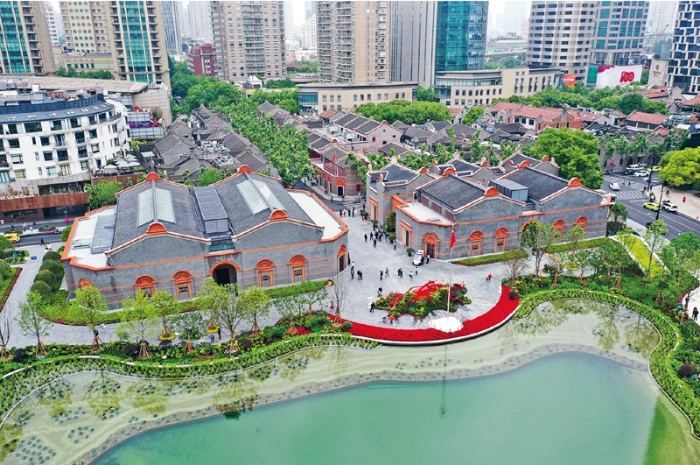 2021年6月3日,位于上海市的中国共产党第一次全国代表大会纪念馆全新开放,基本陈列“伟大的开端——中国共产党创建历史陈列”共展出612件文物展品,较原先基本陈列展出的文物数量扩容3倍多。图为纪念馆俯拍图(2021年5月20日摄)。 孟雨涵/摄