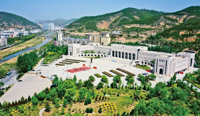 2021年6月30日,延安革命纪念馆经过近5个月的改陈布展,正式对外开放。馆内基本陈列“伟大历程——中共中央在延安十三年历史陈列”共分为7部分,通过2021件文物、900多张照片、29项艺术品场景装置、30处红色教育空间、40余项科技多媒体展示,完整再现了中共中央在延安13年的壮阔画卷。图为纪念馆俯拍图(2021年5月8日摄)。 新华社记者 刘潇/摄