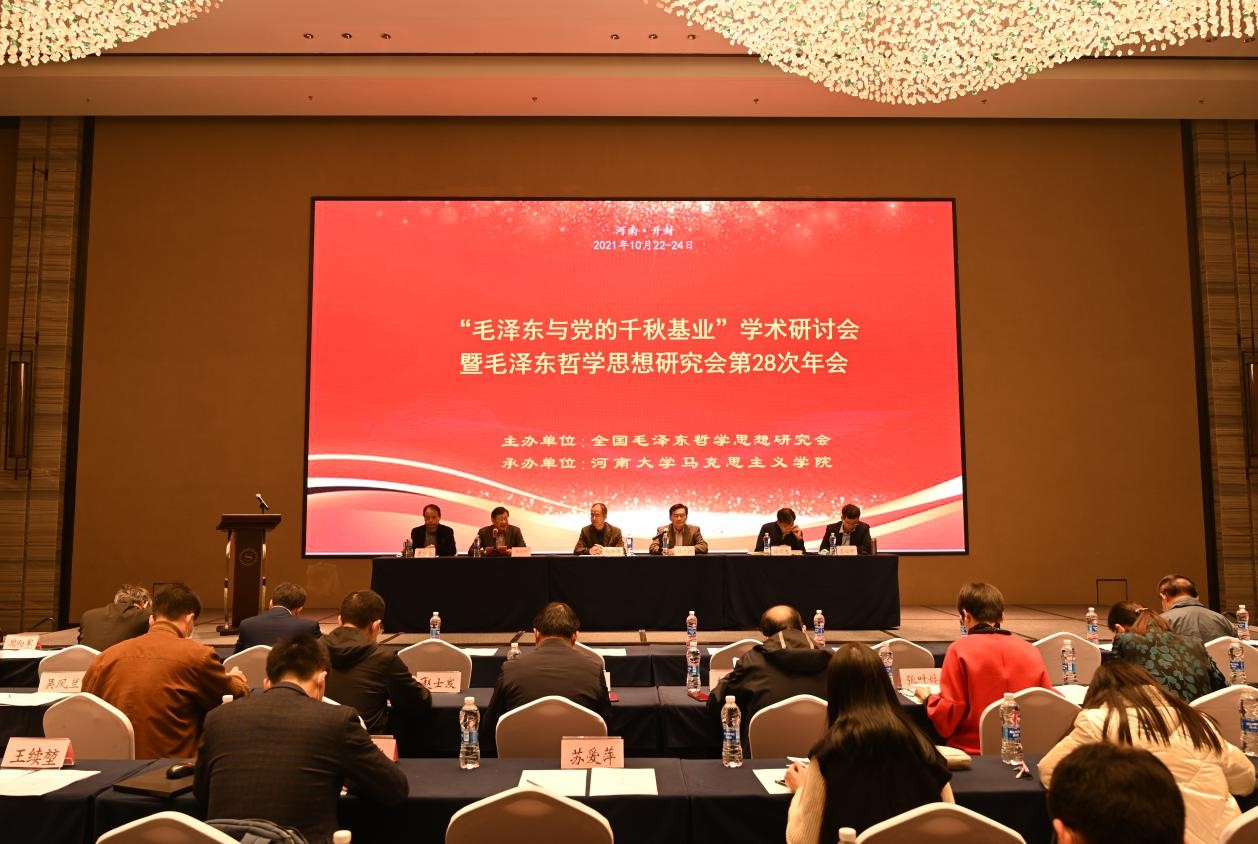 为庆祝建党100周年,贯彻落实习近平总书记“七一”重要讲话精神,毛泽东哲学思想研究会以“毛泽东与党的千秋基业”为主题,于10月22日至24日在河南大学召开第28次学术年会。会议由河南大学马克思主义学院承办,河南大学党委副书记张宝明在开幕式上代表承办方致辞。