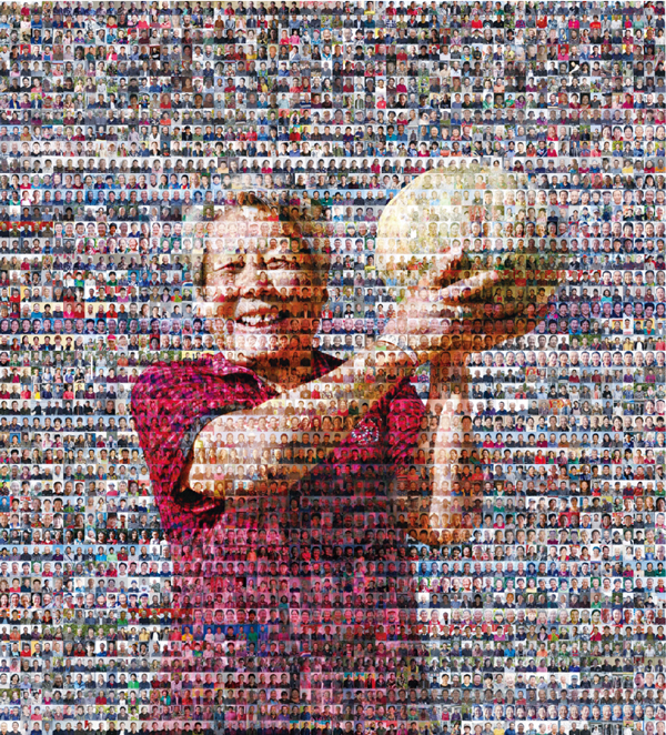 经过艰苦奋斗,中国人民用自己的双手在中华大地上实现了全面建成小康社会的目标,打赢了脱贫攻坚战,历史性地解决了绝对贫困问题。图为第四届中国图片大赛簕杜鹃特别奖获奖作品《大庆3100张脱贫户笑脸绽放幸福画卷》,该图片是大庆市摄影家协会用拼图方式完成的,主图主人公是脱贫户王玉兰。