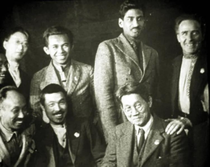 1922年共产国际第四次代表大会上的陈独秀(前排左一)和瞿秋白(后排左一)等。