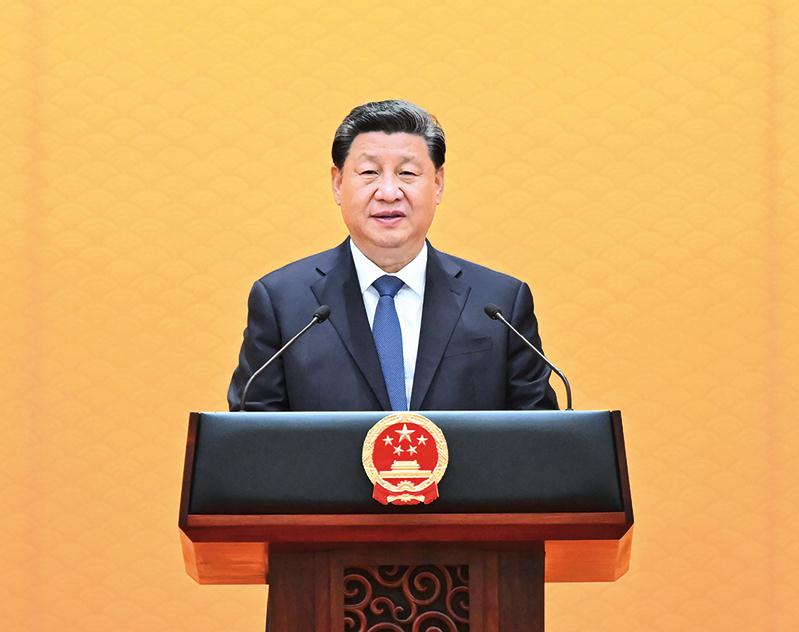 2022年2月5日中午,国家主席习近平和夫人彭丽媛在北京人民大会堂金色大厅举行宴会,欢迎出席北京2022年冬奥会开幕式的国际贵宾。这是习近平在宴会上发表致辞 谢环驰摄/本刊