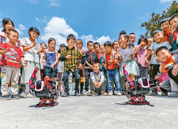 2021年9月11日,以“百年再出发,迈向高水平科技自立自强”为主题的全国科普日活动在全国各地启动。自2004年以来,中国科协已连续17年成功举办全国科普日活动,为积极涵养创新生态、提升全民科学素质、服务高水平科技自立自强作出贡献。图为2021年9月15日,贵州省科技馆联合黔西市科协、黔西市教育科技局一行,走进乌蒙山区铁石苗族彝族乡铁盔小学,为孩子们带来一场科普盛宴。 求是图片 范晖/摄