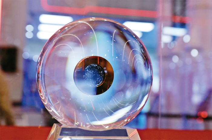 2021年10月21日,国家“十三五”科技创新成就展在京开幕。图为在北京展览馆拍摄的科技创新成就展展出的月壤样品。 新华社记者 金立旺/摄