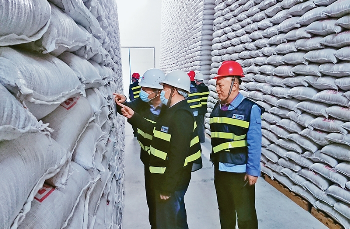 国家储备是国家治理的重要物质基础,要不断提升物资储备系统效能。图为2020年10月19日,国家粮食和物资储备局辽宁局在辽宁中糖物流有限公司,现场督导检查中央储备糖储存情况。 国家粮食和物资储备局供图