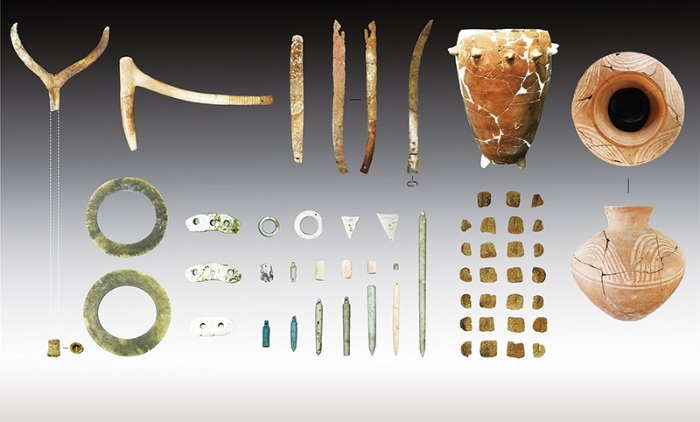 图为山东滕州岗上遗址北区二次葬大墓出土的典型器物。山东滕州岗上遗址入选2021年度全国十大考古发现。 新华社发 国家文物局供图