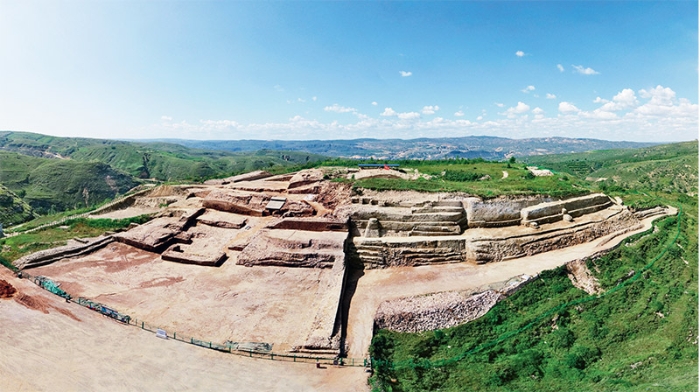 石峁城是10年前发现的用石块砌筑的山城,距今4100—3900年,面积400万平方米。石峁城由外城、内城和皇城构成,有多种防御设施。城内核心处的皇城台,总高度达数十米,台顶有面积数千平方米的大型宫殿建筑,宫殿台基上有雕刻兽面及各种动物形象的石条和石柱。在皇城台还发现多件高50多厘米到1米的陶鹰,应与某种信仰和崇拜有关。石峁城有浓厚的军事防御色彩,在城内还发现多处埋有青年女性头骨的祭祀坑,这表明在夏王朝建立前夕,陕北地区的阶级分化已相当严重,出现了拥有强大军事力量的王权国家。