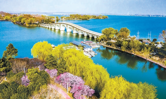 “绿水青山就是金山银山”。习近平生态文明思想准确把握人类社会发展规律,立足新时代生态文明建设实践,深刻回答了为什么建设生态文明、建设什么样的生态文明、怎样建设生态文明等重大理论和实践问题。在习近平生态文明思想指引下,我们党以前所未有的力度抓生态文明建设,开展了一系列根本性、开创性、长远性工作,决心之大、力度之大、成效之大前所未有,生态文明建设从认识到实践都发生了历史性、转折性、全局性的变化。图为2022年3月24日拍摄的东海县西双湖国家级湿地公园。 邵光明摄