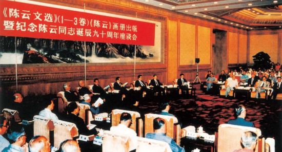 1995年6月13日,中共中央在北京人民大会堂举行《陈云文选》(1-3卷)和《陈云》画册出版暨纪念陈云同志诞辰90周年座谈会。江泽民总书记发表重要讲话,指出:“陈云同志的业绩和著作,他的思想、品德和风格,属于我们伟大的党,属于我们伟大的国家和民族,他永远是我们学习的楷模。”