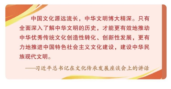 文化是一个国家、一个民族的灵魂。实现中华民族伟大复兴,需要物质文明极大发展,也需要精神文明极大发展。习近平总书记在文化传承发展座谈会上发表重要讲话,从党和国家事业发展全局战略高度,对中华文化传承发展的一系列重大理论和现实问题作了全面系统深入阐述,为扎实推进中华民族现代文明和社会主义文化强国建设提供了科学指引。我们必须以重要讲话精神为指导,不断深化对文化建设的规律性认识,加强研究阐释,在新的起点上继续推动文化繁荣、建设文化强国、建设中华民族现代文明,更好担负起新的文化使命,坚持中国特色社会主义文化发展道路,满足人民日益增长的精神文化需求,巩固全党全国各族人民团结奋斗的共同思想基础,不断提升国家文化软实力和中华文化影响力。