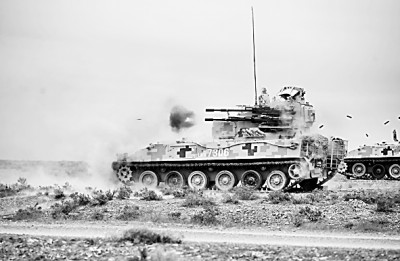 陆军第76集团军某旅防空分队官兵利用某型高炮对地面目标实施精准打击。李忠元摄/光明图片