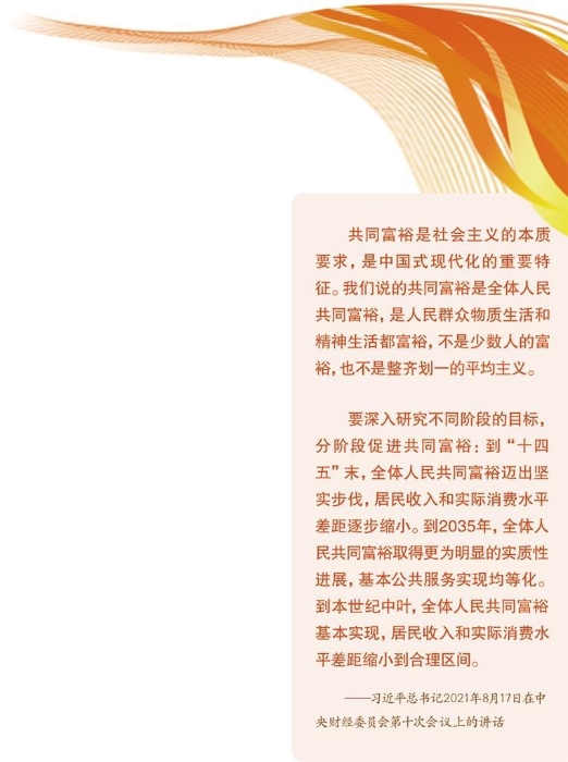 党的二十大报告强调“中国式现代化是全体人民共同富裕的现代化”,提出“我们坚持把实现人民对美好生活的向往作为现代化建设的出发点和落脚点,着力维护和促进社会公平正义,着力促进全体人民共同富裕,坚决防止两极分化”。
