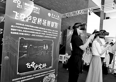 南开大学的大学生们借助大空间多人虚拟现实交互体验设备,感受历史。刘东岳摄/光明图片