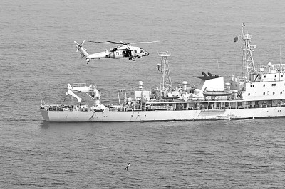 北部战区空军某部与海军某部组织海上联合搜救训练。新华社发