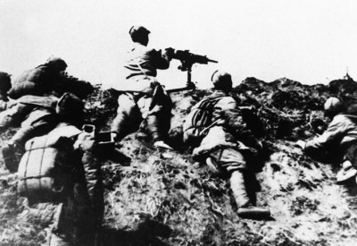 百团大战期间的八路军机枪阵地。新华社发