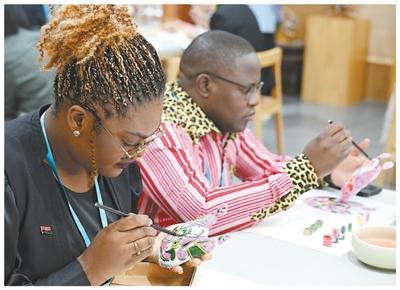 2024年5月20日,参加第八届中非青年大联欢活动的非洲青年代表在北京的中国宋庆龄青少年科技文化交流中心体验泥塑彩绘。