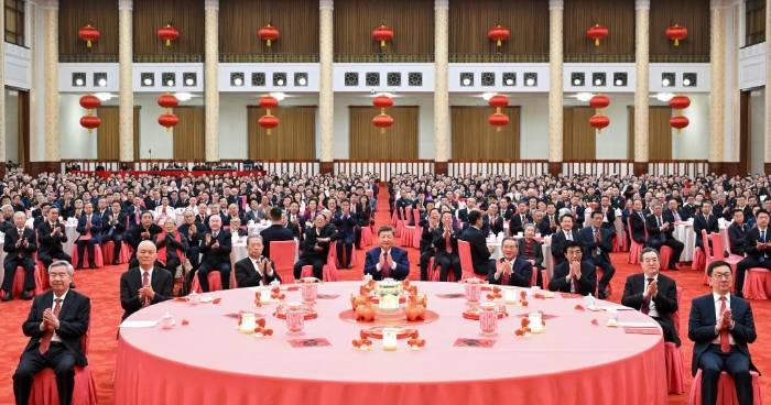 2月14日,中共中央、国务院在北京人民大会堂举行2026年春节团拜会。党和国家领导人习近平、李强、赵乐际、王沪宁、蔡奇、丁薛祥、李希、韩正等同首都各界人士欢聚一堂、共迎佳节。新华社记者 谢环驰 摄