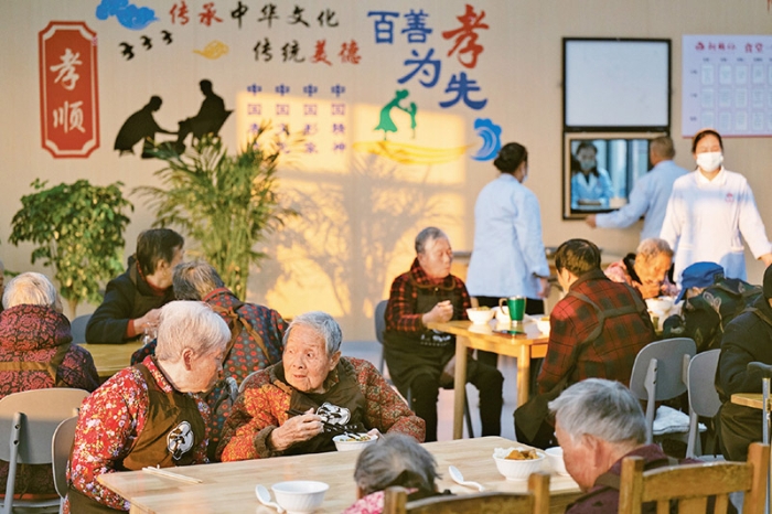 近年来,全国各地持续推动养老服务从基础保障向品质服务拓展,不断提升老年群体的获得感、幸福感。图为2025年10月14日,湖北省孝昌县王店镇的一家养老院内,老人们在就餐。 新华社记者 伍志尊/摄